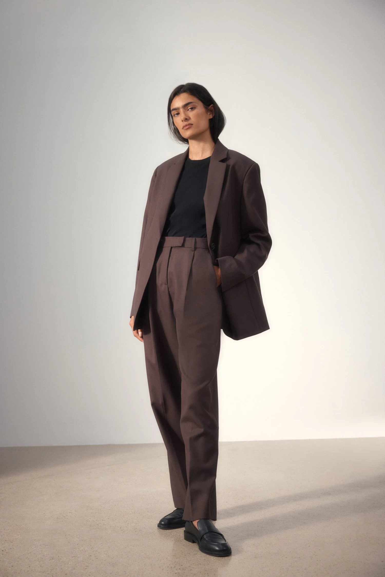 Our Daria Wool Tailored Trouser is an elevated pant style in premium wool. These suit trousers have a lightweight feel and tailored silhouette that moves with the body, and are designed with hidden closures, pockets, belt loops and a full-length leg. Complete the look with our Daria Wool Tailored Blazer and a cotton tee or tank.