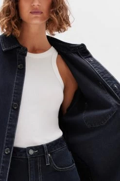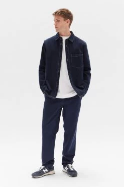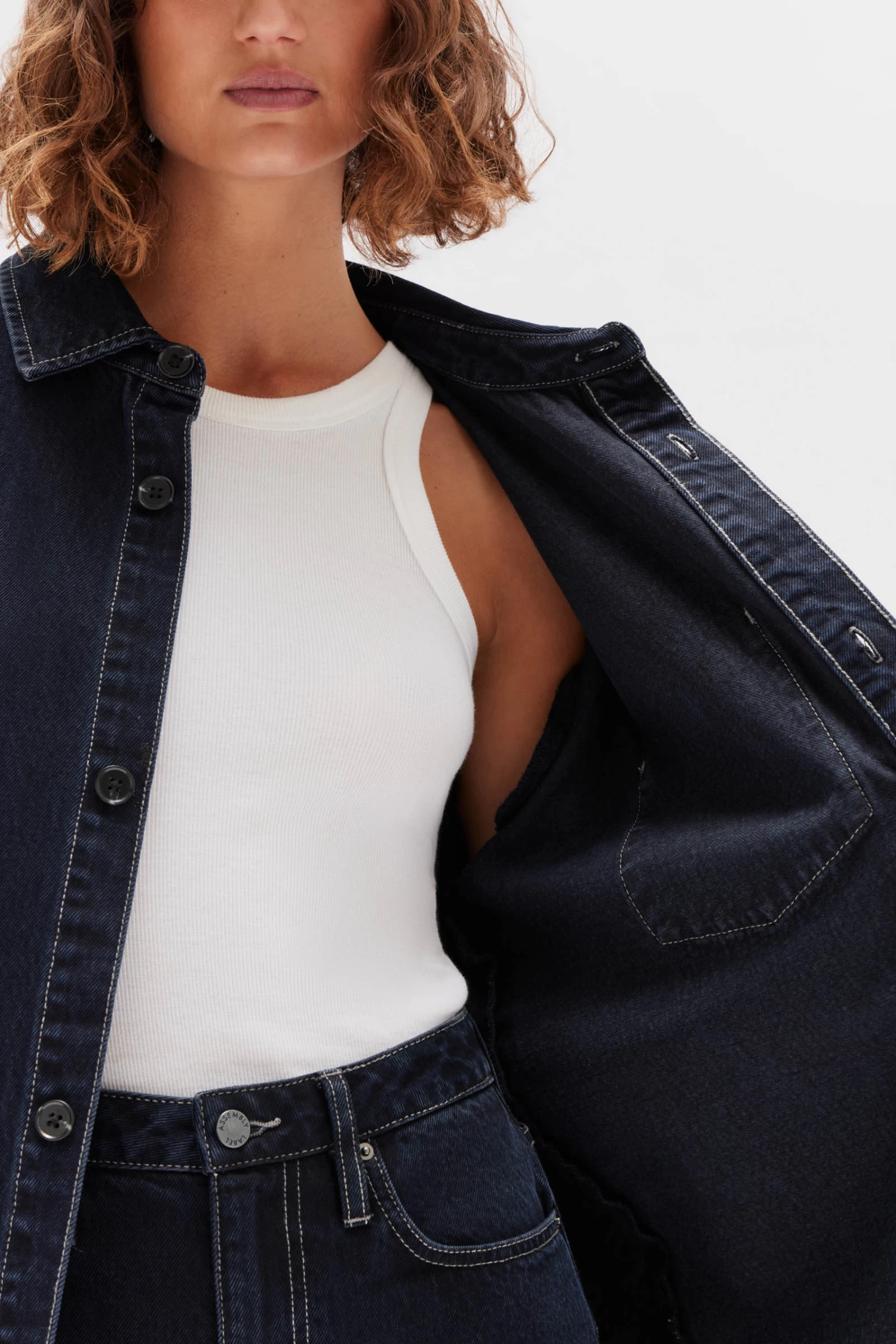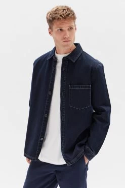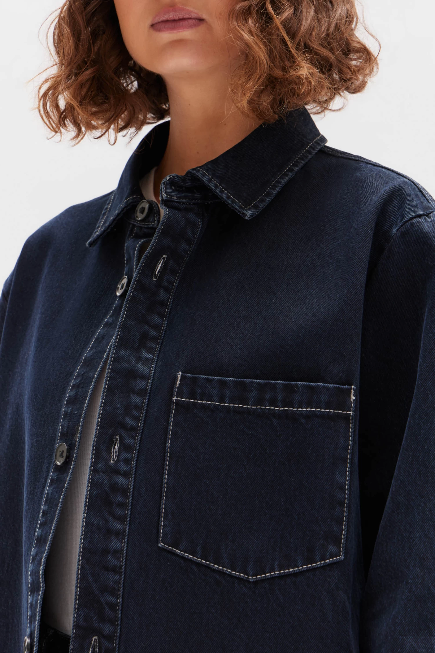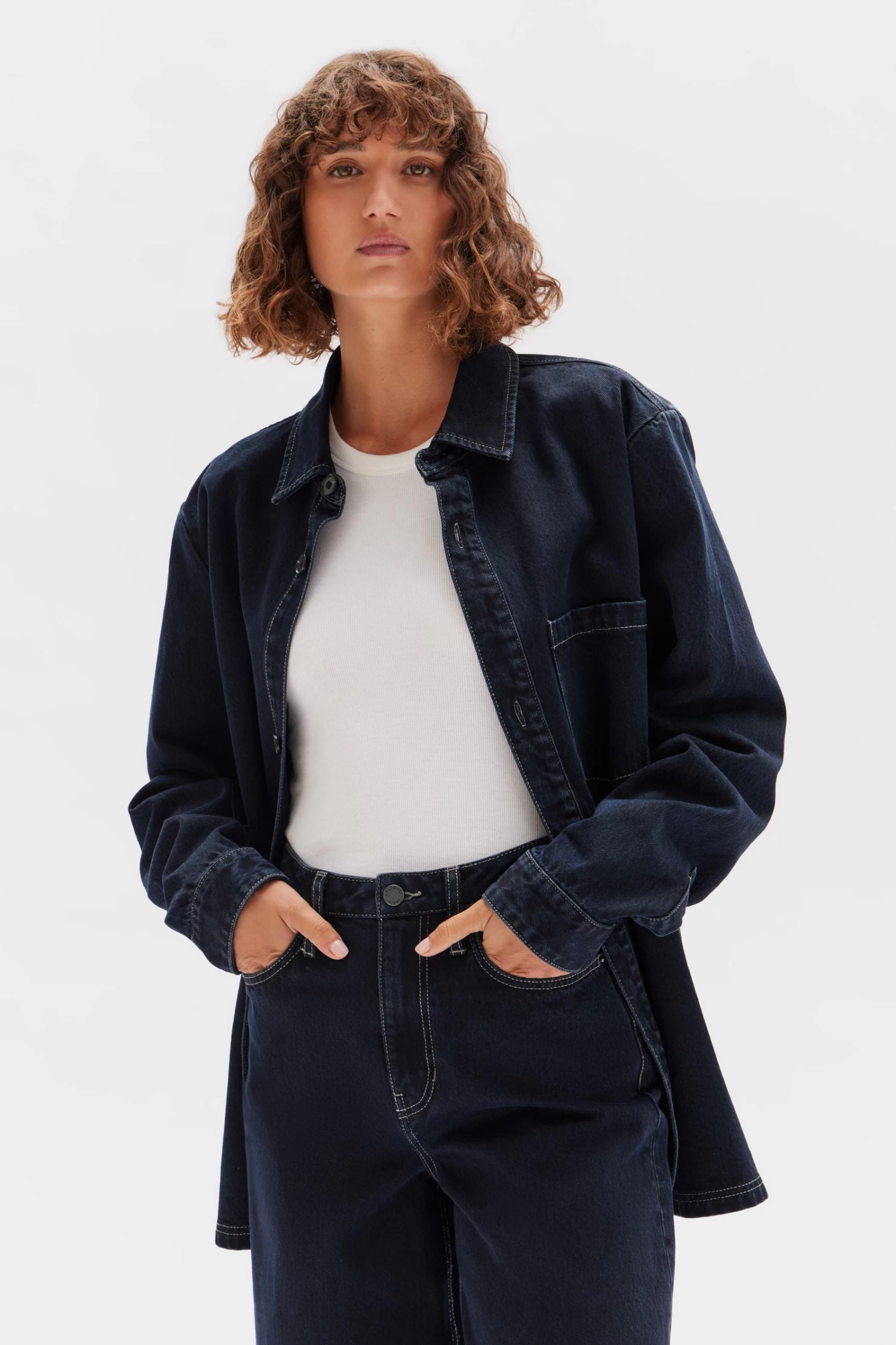 The Denim Overshirt is our updated take on a wardrobe classic. Cut from dark indigo wash denim with contrast ecru stitching, this button up overshirt can be styled and worn like a denim jacket. It features a collar, chest pocket, buttoned cuffs, subtle splits at the sides and an oversized fit that creates an off-duty feel.