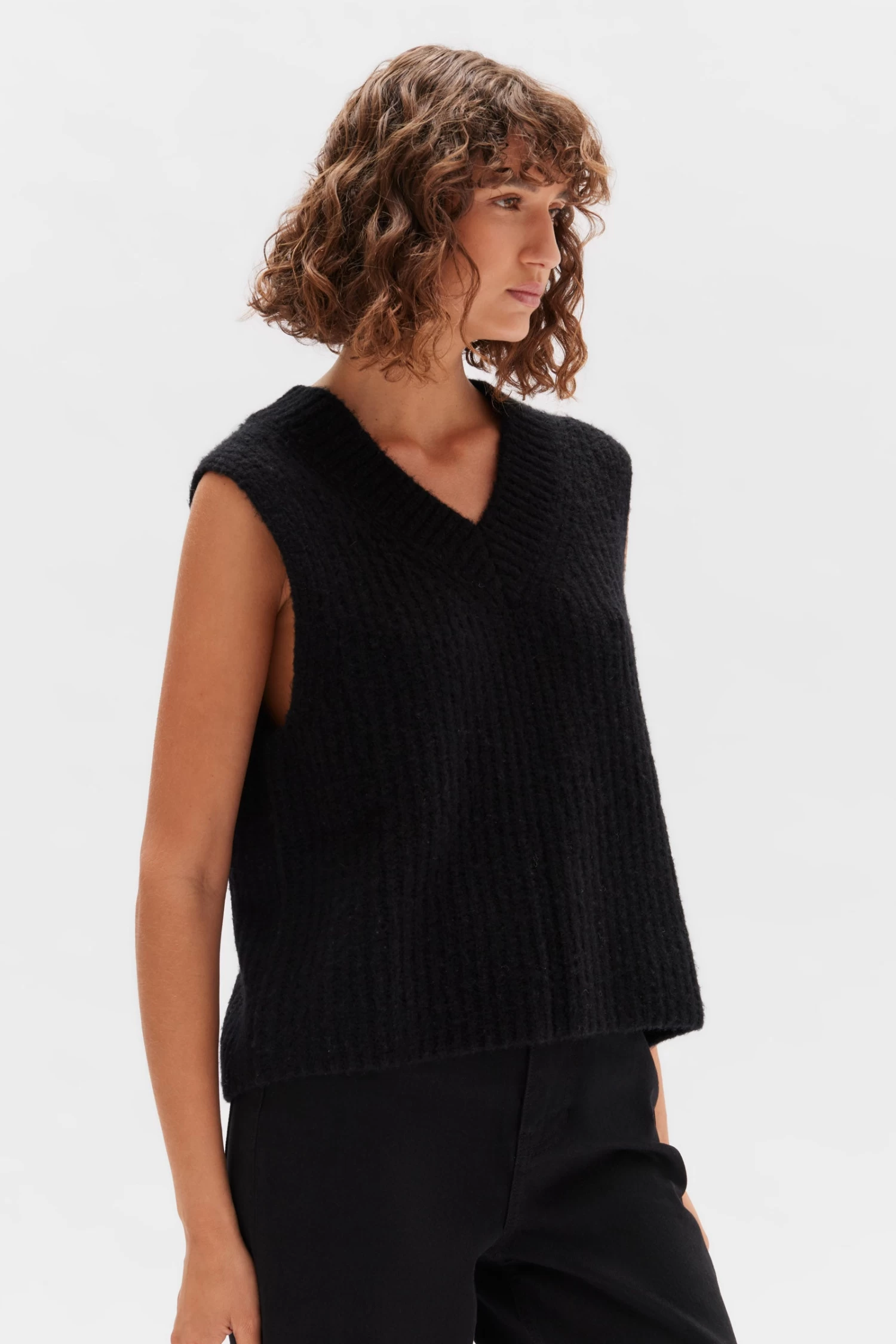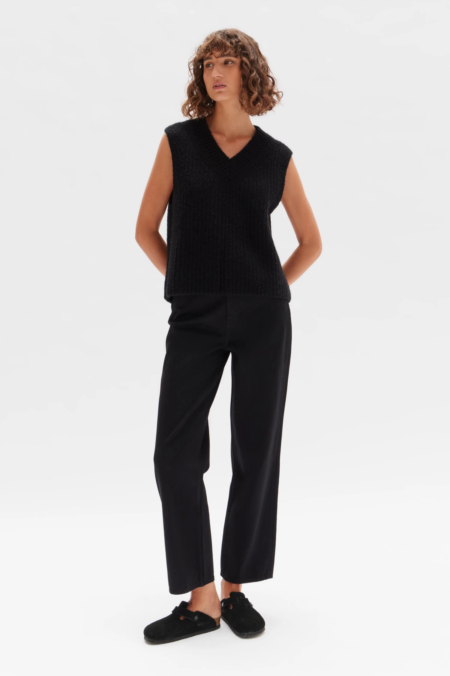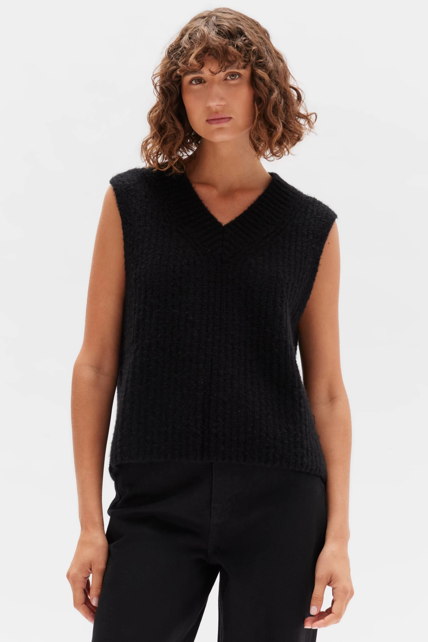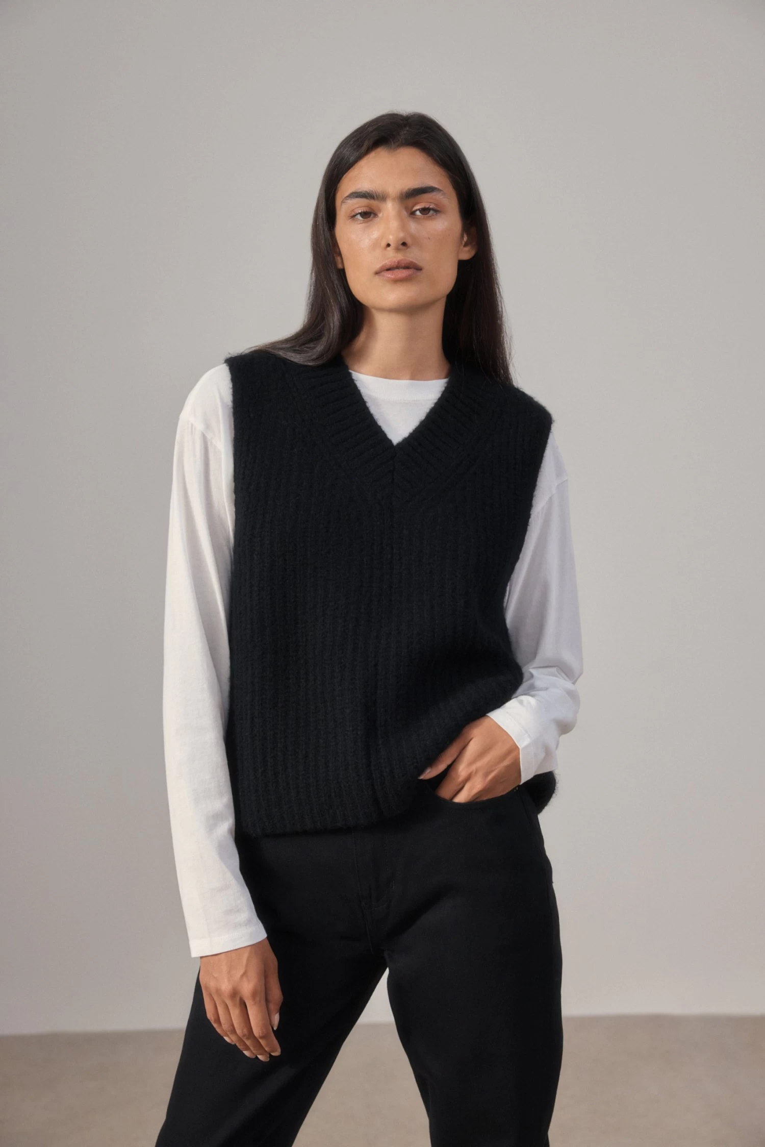 The Edith Vest is made for layering with ease. Crafted from a beautifully soft blend that includes cashmere and Merino wool, this v-neck vest has the luxurious qualities of cashmere with a chunkier texture that feels warm but not heavy. Wear this knitted vest layered over shirts and under outerwear, or style as a top in-between seasons.