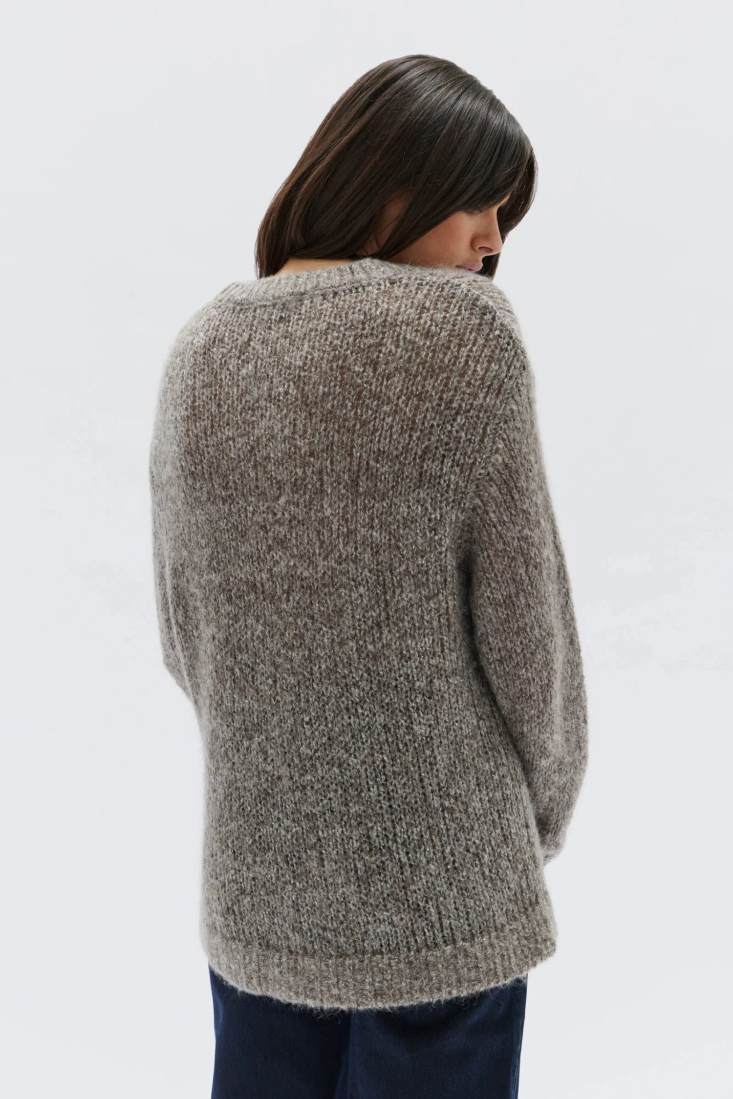 Embrace the luxurious feel of mohair with the Elise Knit. This oversized jumper is crafted from a premium blend of mohair, wool and recycled nylon thats supremely soft and fluffy, while the open weave knit is lightweight and subtly sheer. Designed to be worn for an extra-slouchy fit, our Elise Knit makes layering look and feel effortless.