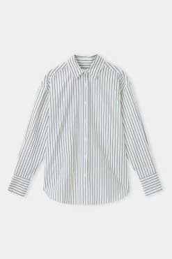 The Everyday Stripe Shirt is an updated version of our Everyday Oversized Poplin Shirt with a new, less oversized fit. This button-up shirt is designed for a modern, relaxed fit and is made from crisp 100% cotton poplin. It features a collar and long sleeves with buttoned cuffs and is available in seasonal stripes. Dress yours up or down, depending on the occasion.