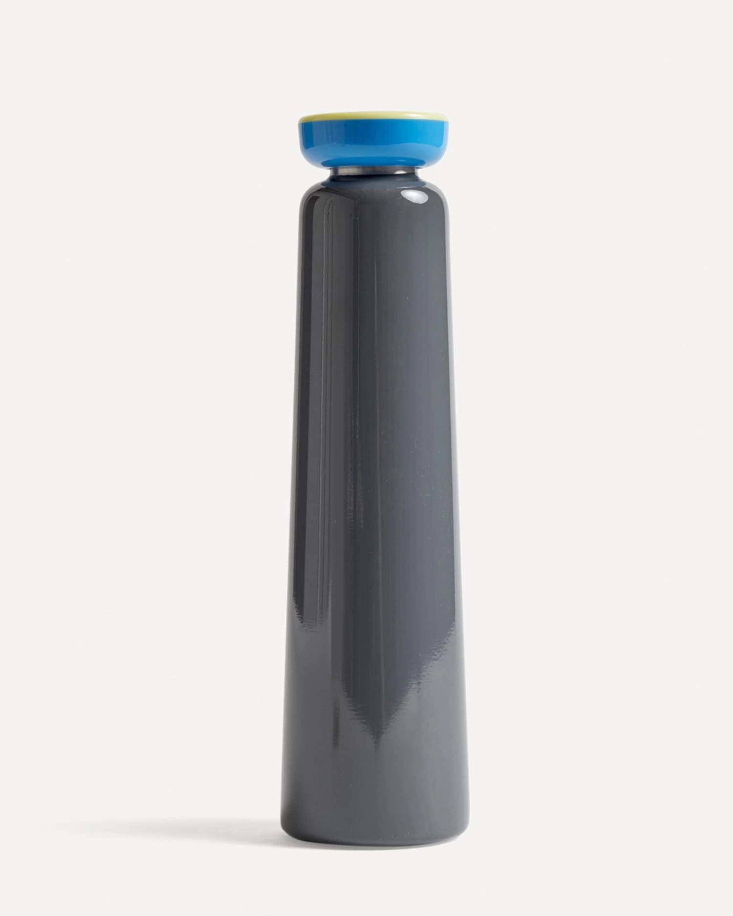 Contrasting colours make for a playful expression with George Sowden’s bottle series. Crafted in stainless steel with a plastic screw lid, the functional design is suitable for containing hot and cold drinks.Â