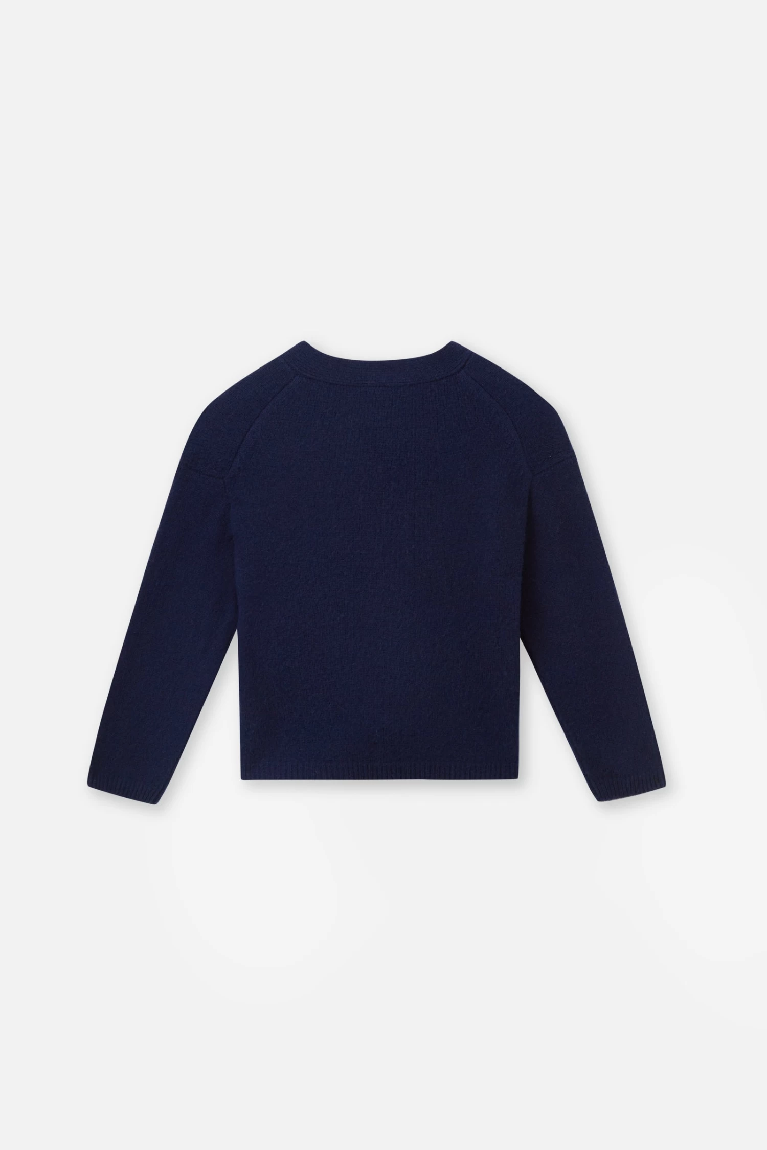 Our Kids Flynn Cardigan is a classic wardrobe piece with a premium feel. This knitted cardigan is made using cotton and recycled nylon yarns that create a soft, fluffy texture. Complete with tort buttons through the front, this childrens cardigan is perfect for layering outfits in cool weather.