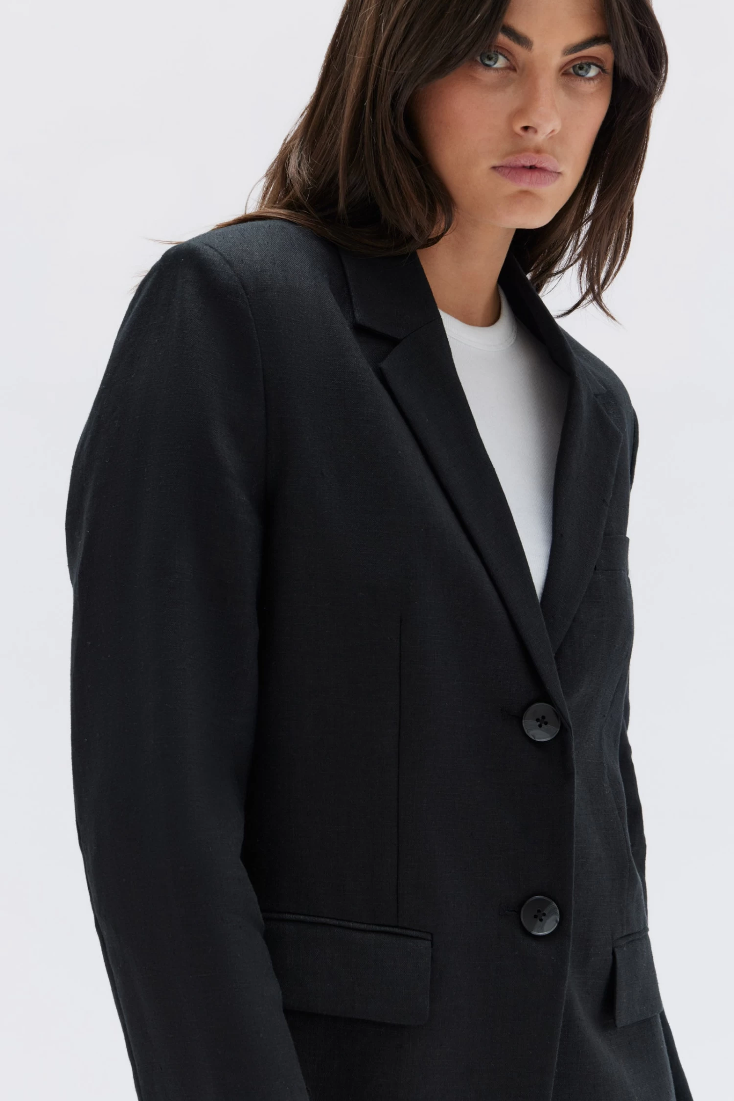 Our Leila Linen Jacket is an essential summer outerwear style. Tailored by experts and crafted from premium yarn-dyed linen, the Leila Jacket has a modern, oversized fit with a boxy silhouette. This tailored linen jacket is semi-lined, features two welt pockets, and is designed to be worn with our Leila Short or Pant for a complete linen suit.