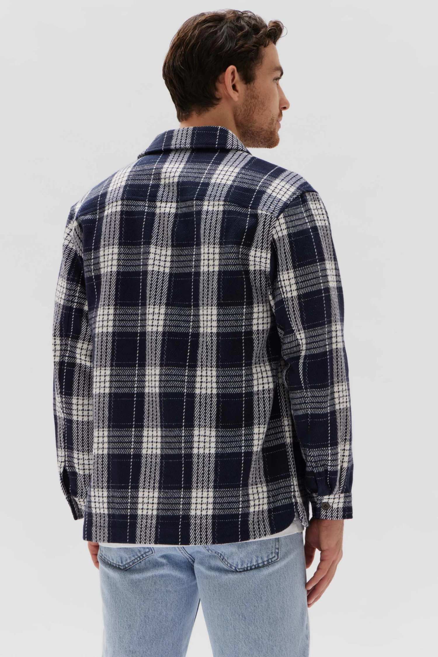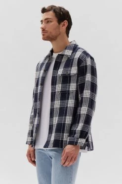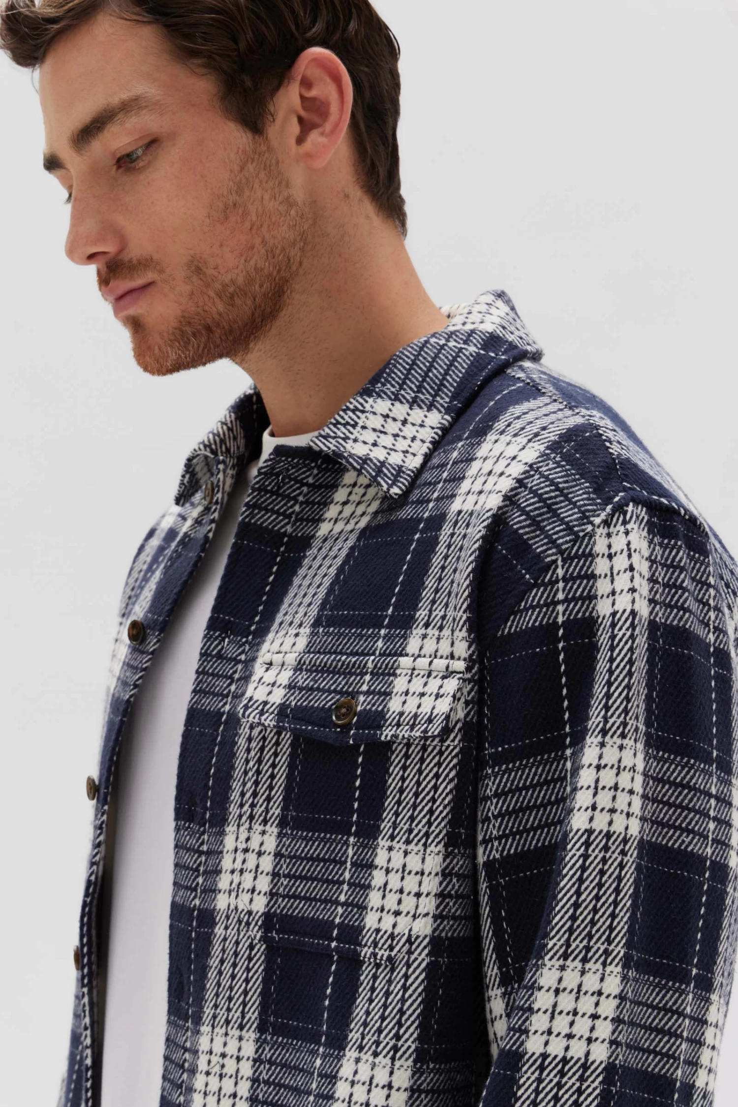 Crafted from heavyweight textured cotton, the Mikael Check Overshirt is warm, robust and made to be worn like a jacket. Designed with a collar, buttoned chest pocket and buttoned cuffs, this premium check overshirt buttons through front, with the option of wearing it open and layered over a tee or knit