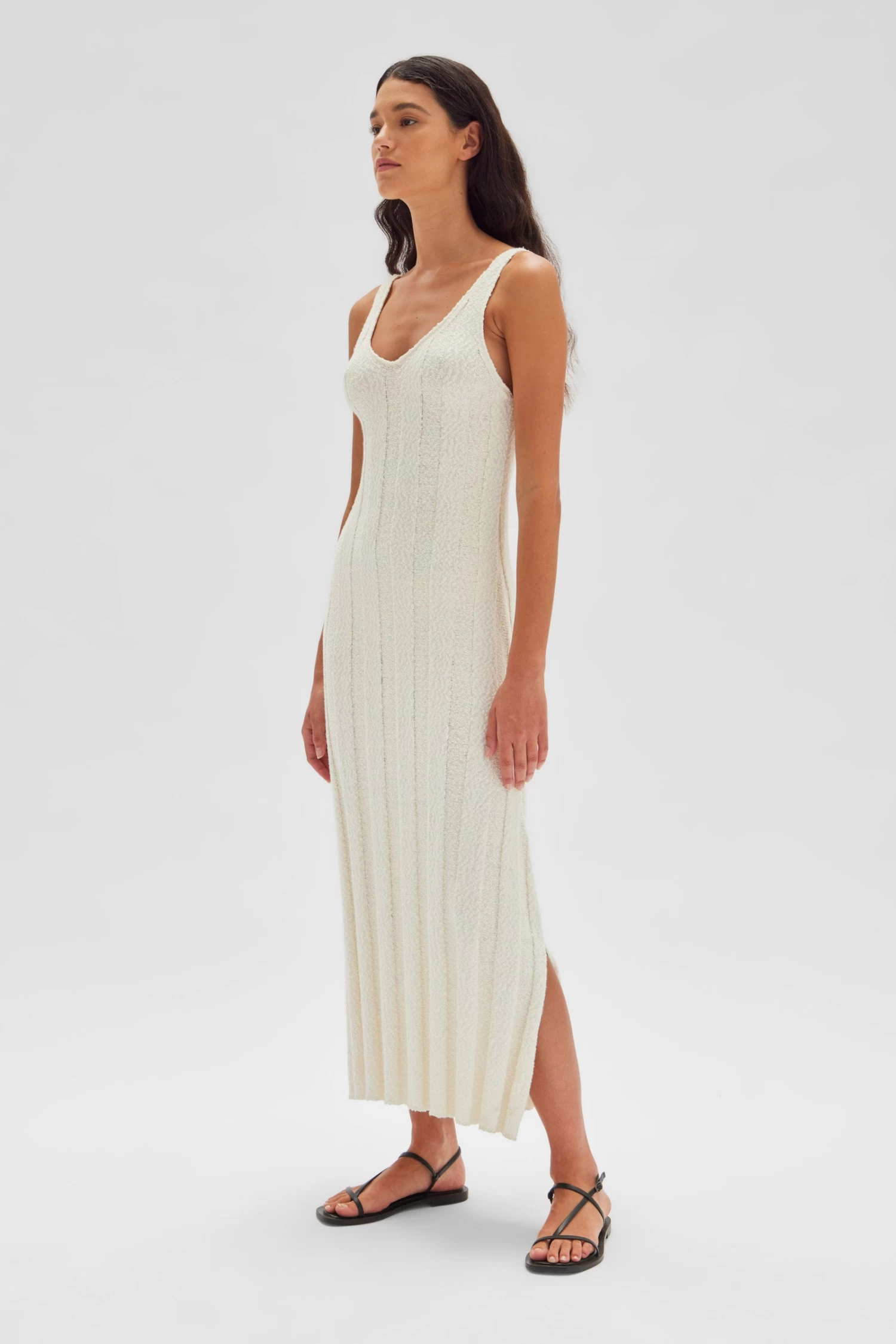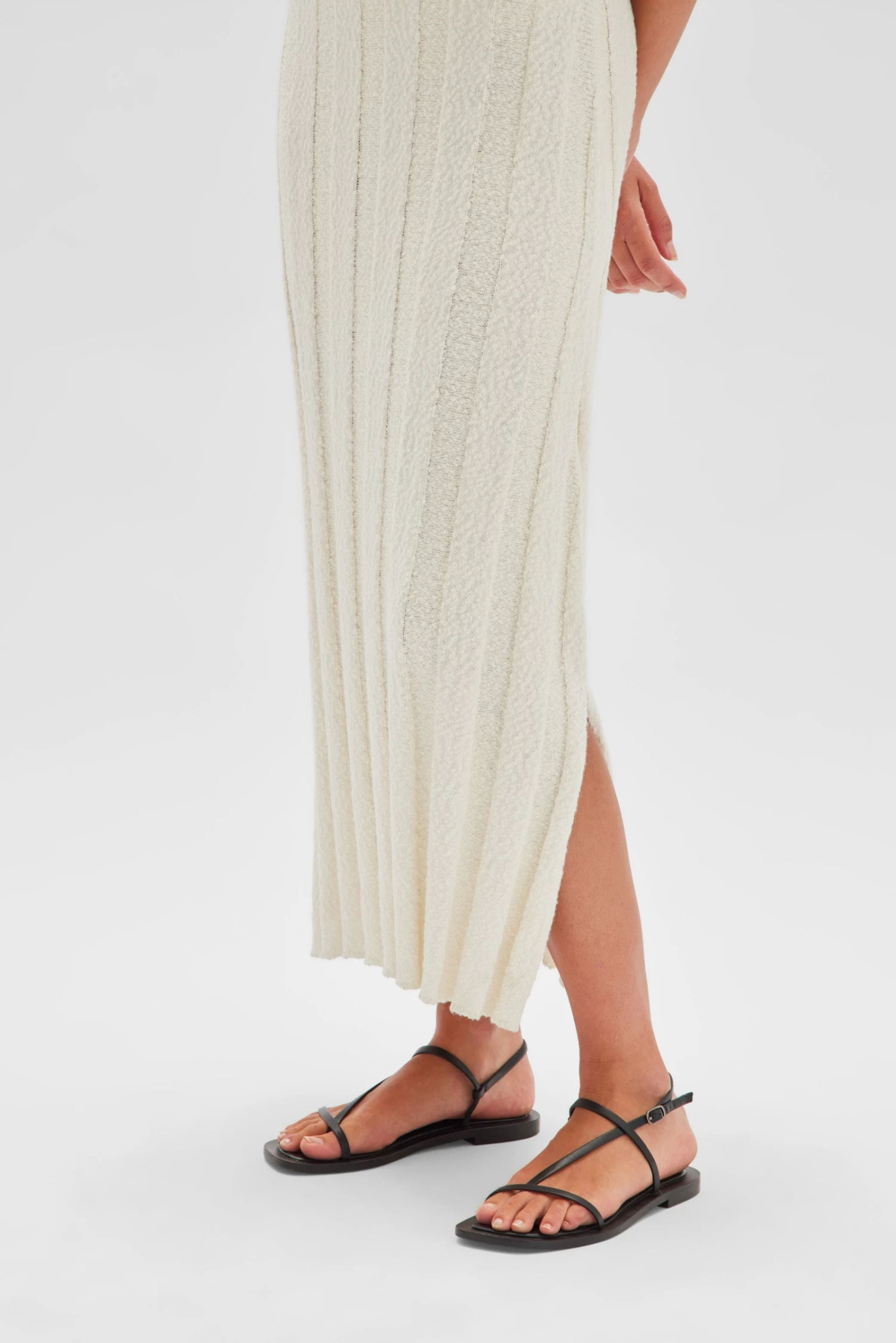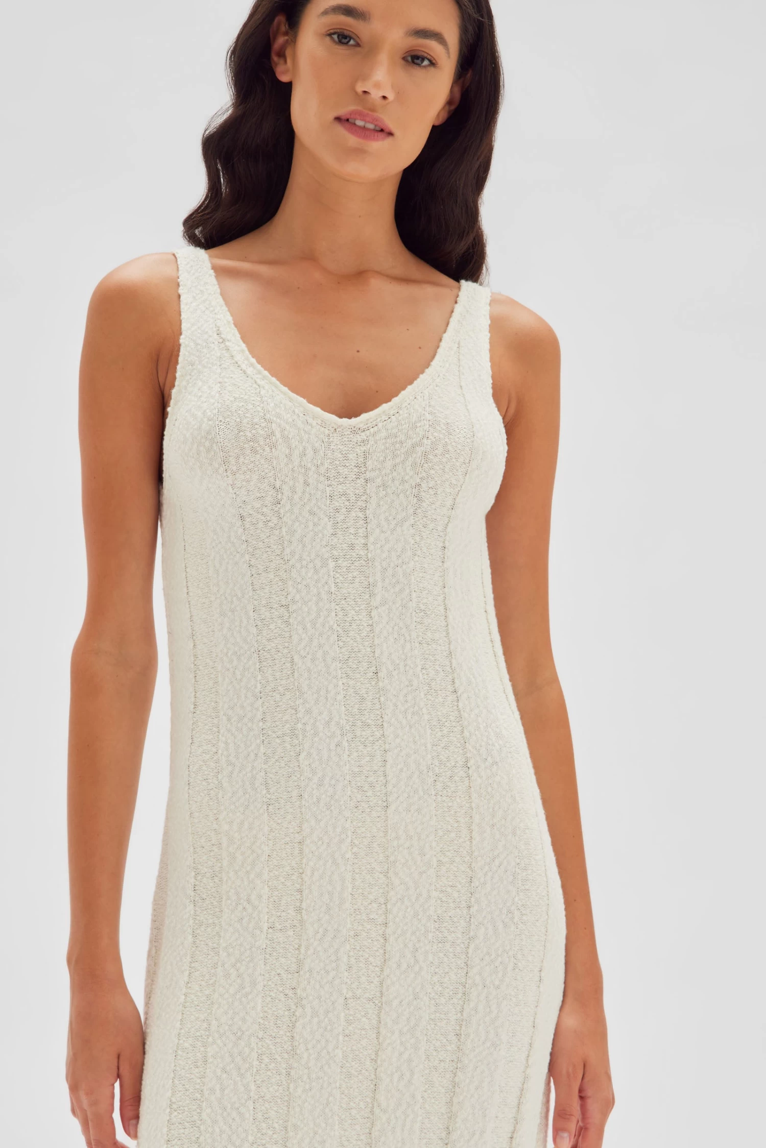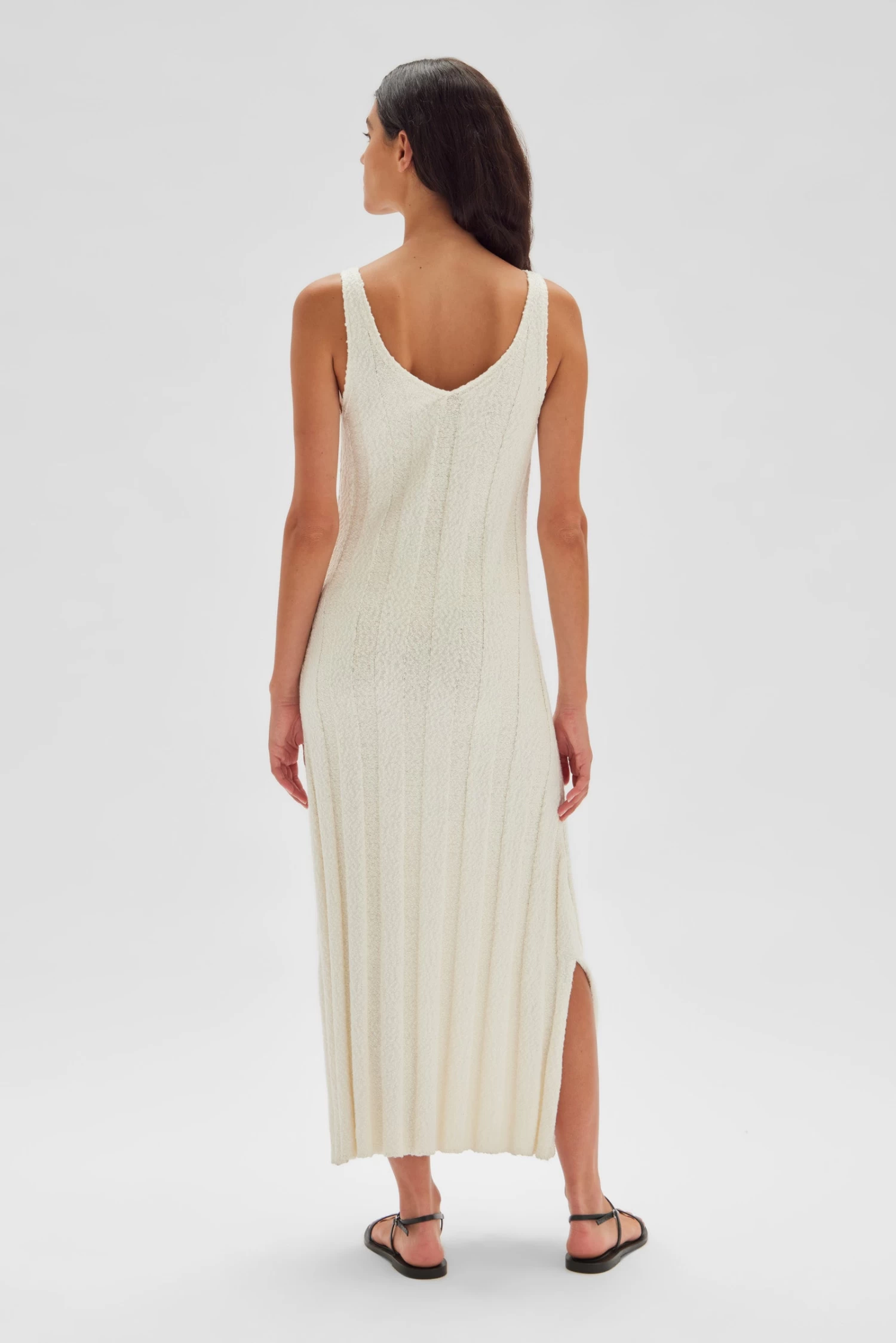 The Nina Boucle Dress is designed with this season’s most desirable fabric. Our cotton boucle has a soft, sumptuous finish with visible texture, and the wide ribbed design gives the dress stretch. Made to skim your body, our boucle knit dress has a v-neckline and back, and side vents that create movement.