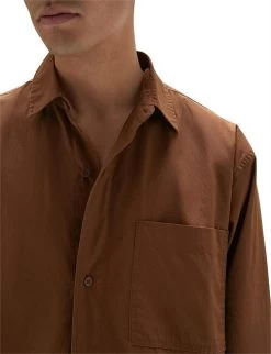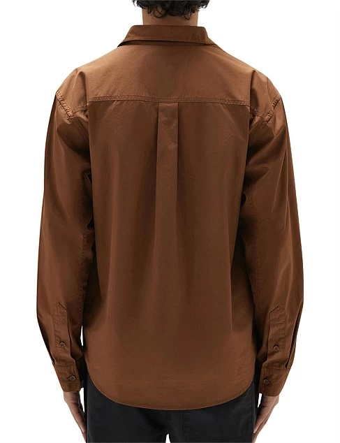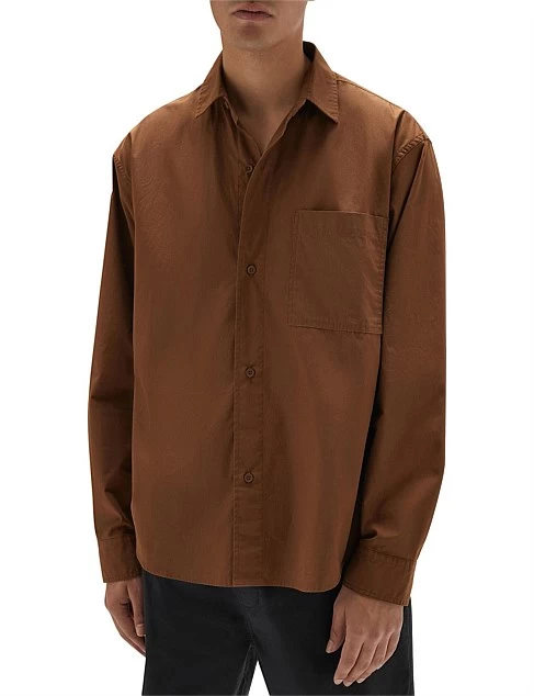 The Simon Poplin Long Sleeve Shirt is a men’s modern wardrobe essential. Crafted from mid- weight cotton poplin that creates a slightly boxy fit, this long sleeve collared shirt features details including buttoned cuffs, a box pleat and chest pocket.