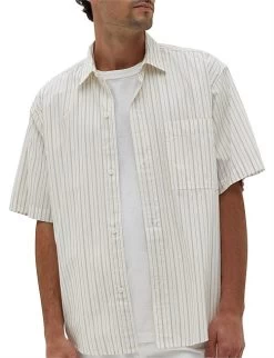 The Simon Poplin Short Sleeve Shirt is a wardrobe essential for warmer seasons. This button-up shirt is made from mid-weight cotton poplin and is designed for a modern boxy fit with a collar, box pleat and chest pocket. Stock up on this cotton poplin shirt in a range of seasonal shades and stripes.