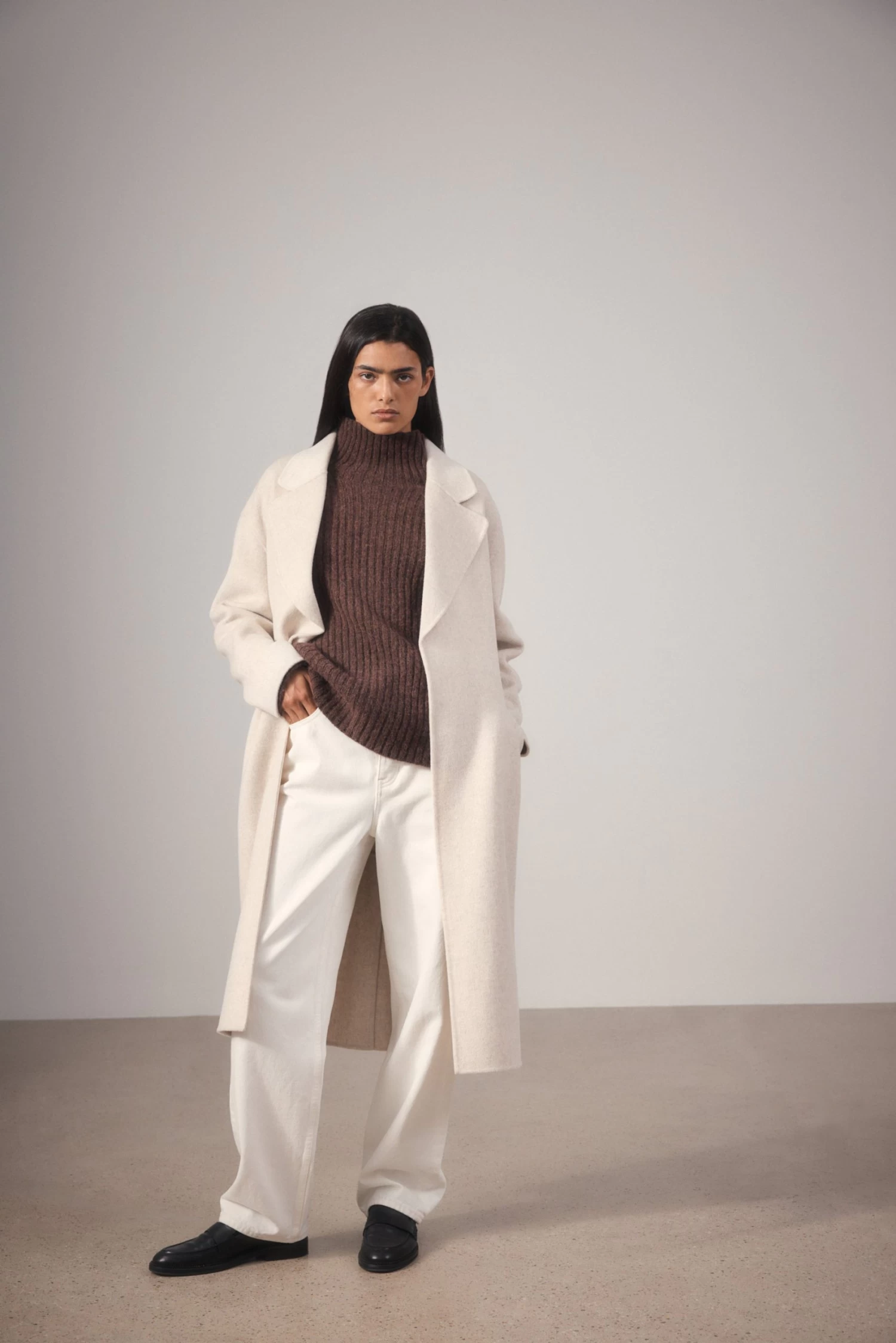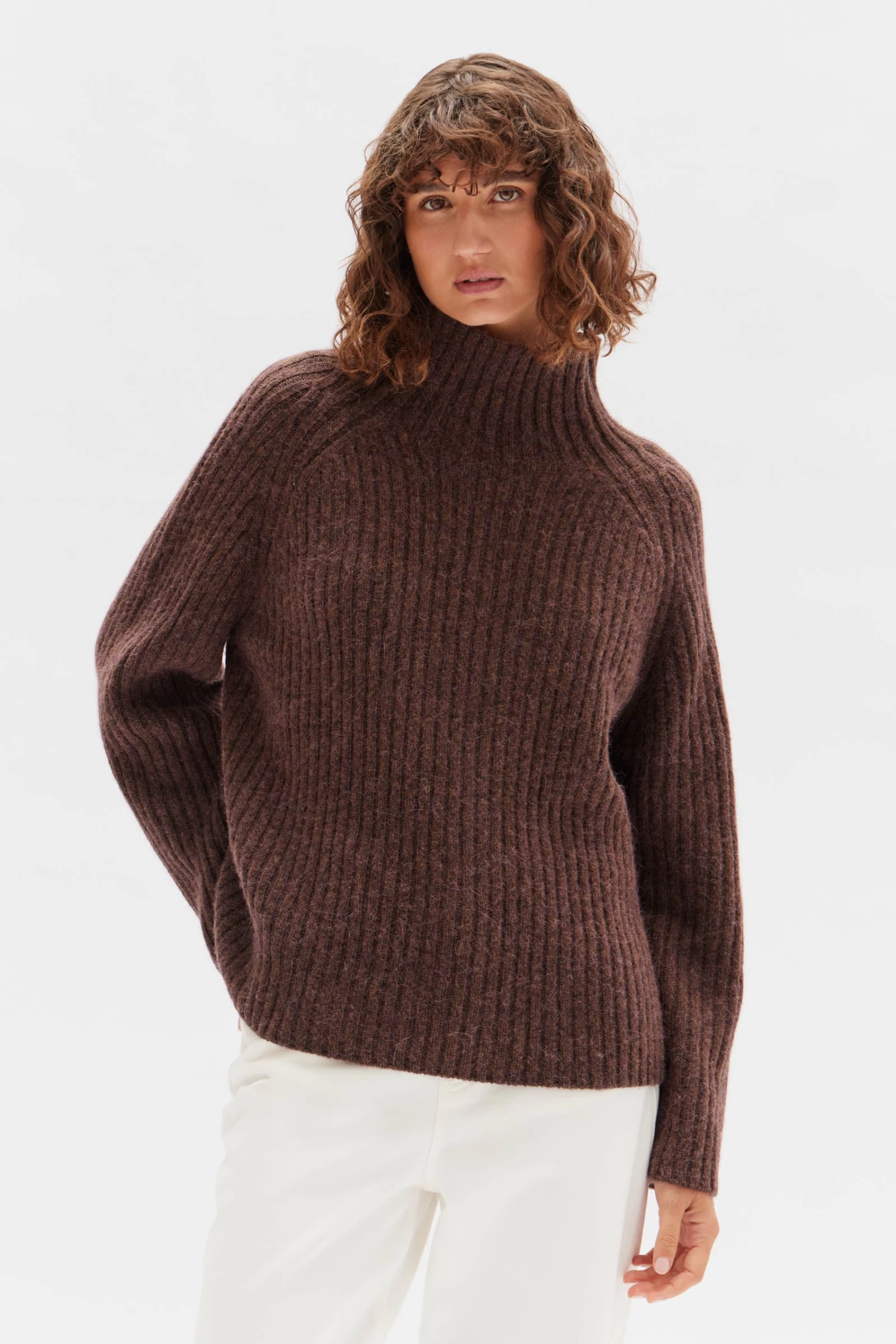 Embrace sumptuous texture and shape this season with the Wool Alpaca Knit. Elegantly oversized with a high, wide neckline and raglan sleeves, this knit is perfect for wearing over lighter layers. Its made using premium Merino wool and alpaca wool yarns to create warmth and softness, while the addition of natural hemp yarns give the knit a robust, structured quality.