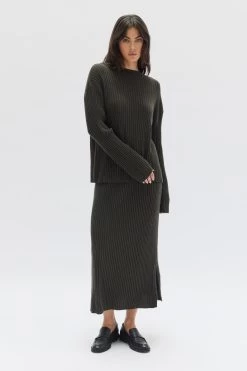The Wool Cashmere Rib Long Sleeve Top is a layering essential. Knitted from premium wool and cashmere yarns, this soft ribbed knit has a relaxed stretchy fit, crew neckline and dropped shoulders. This is the perfect knit top to wear everyday, and can be styled as a set with our coordinating Wool Cashmere Rib Skirt.