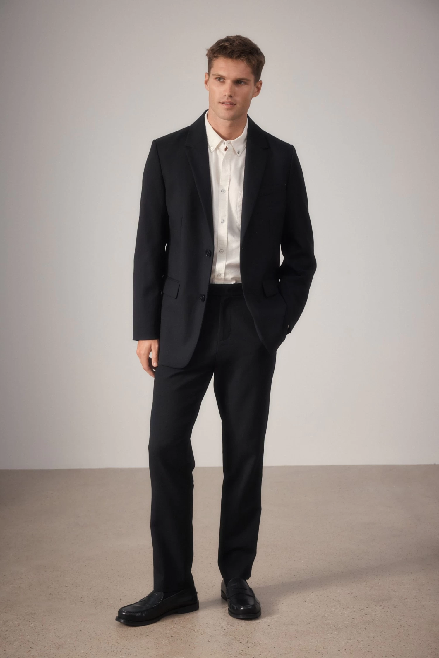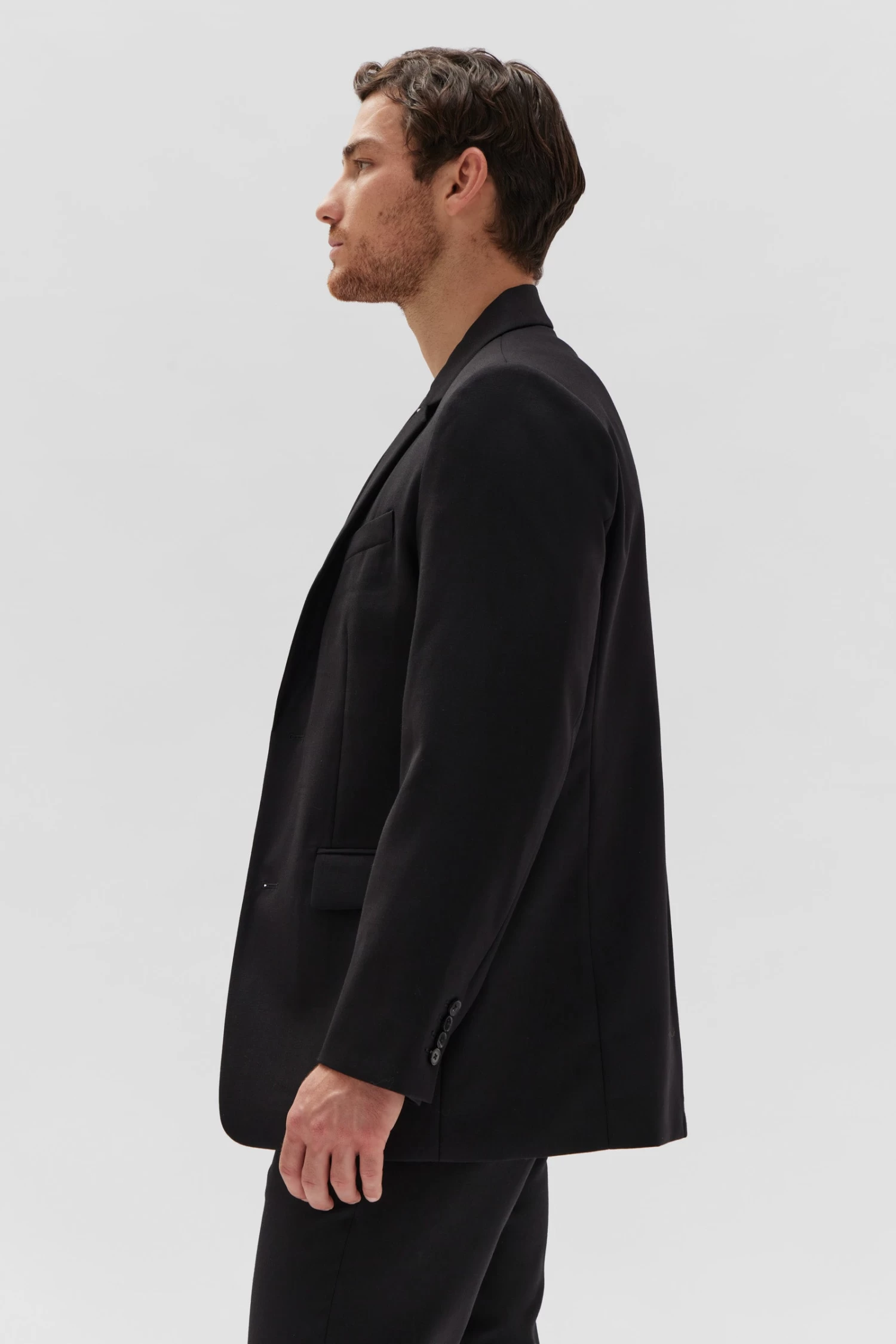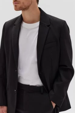 A menswear essential, the Wool Tailored Jacket is perfect for formal occasions and officewear. This black jacket is crafted from premium 100% wool with a brushed feel, and it features internal lining, external pocket details, an internal pocket, notched lapels, two buttons through the front, buttoned cuffs and a back vent. Wear the tailored jacket with our coordinating Wool Tailored Pant as a complete suit.