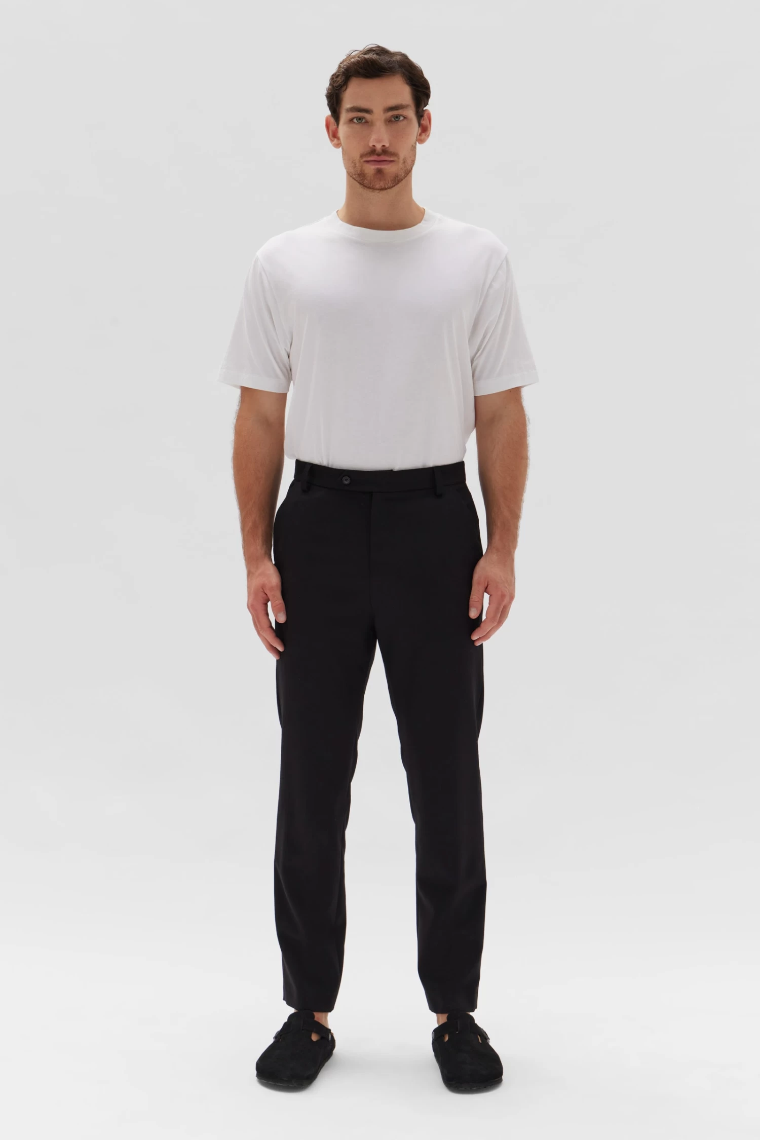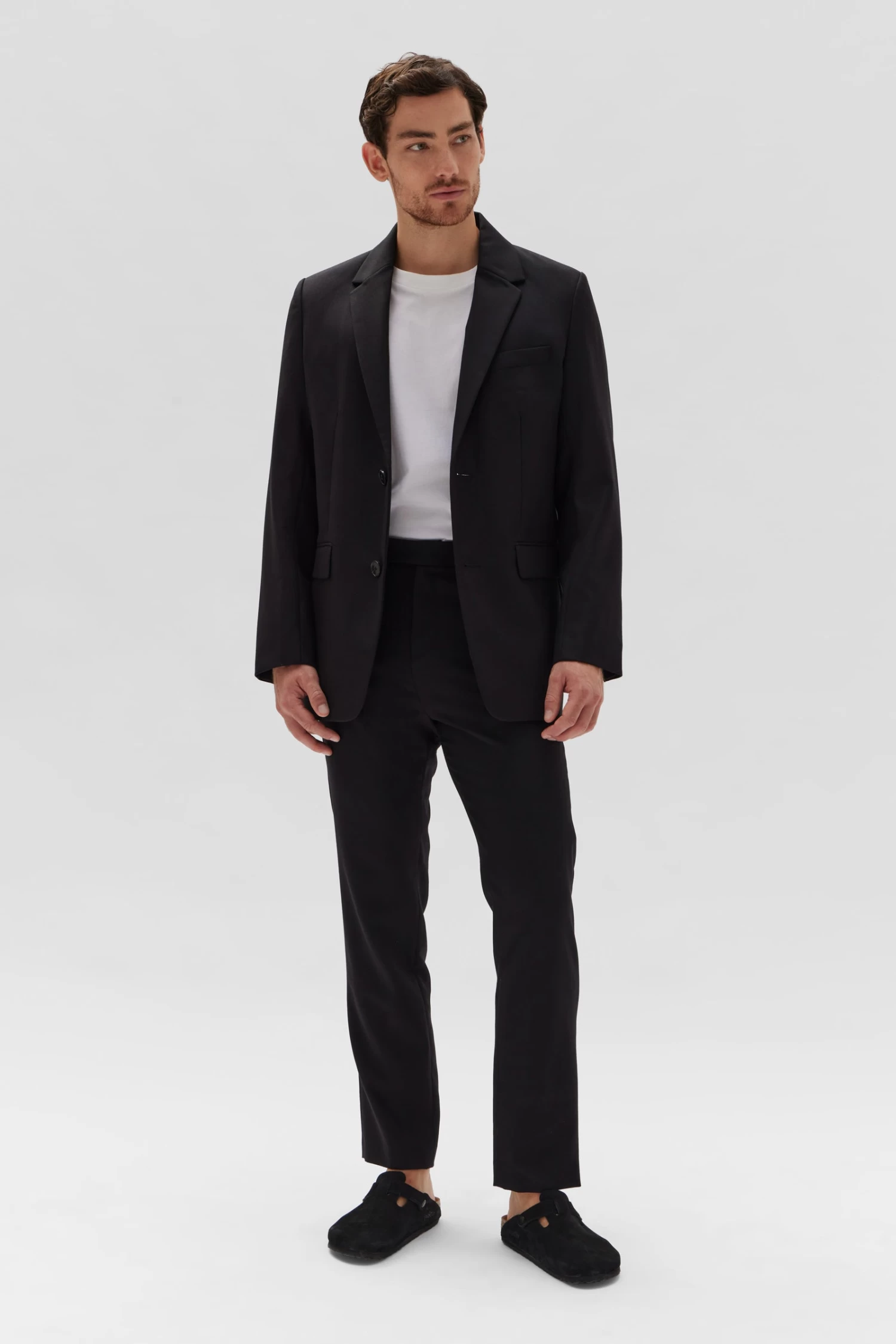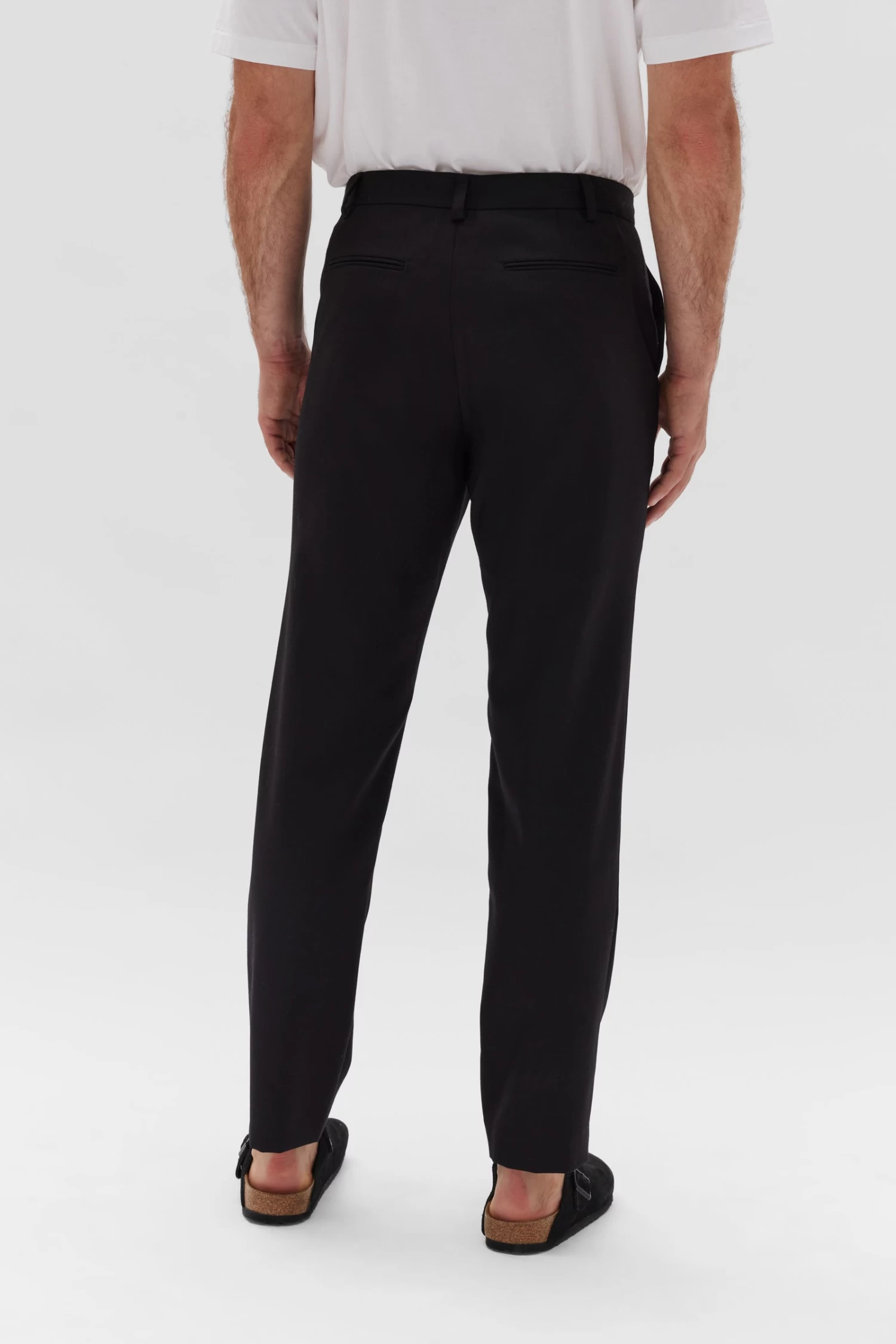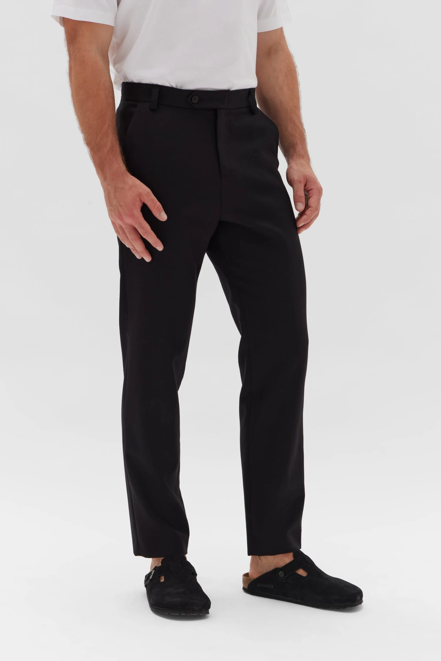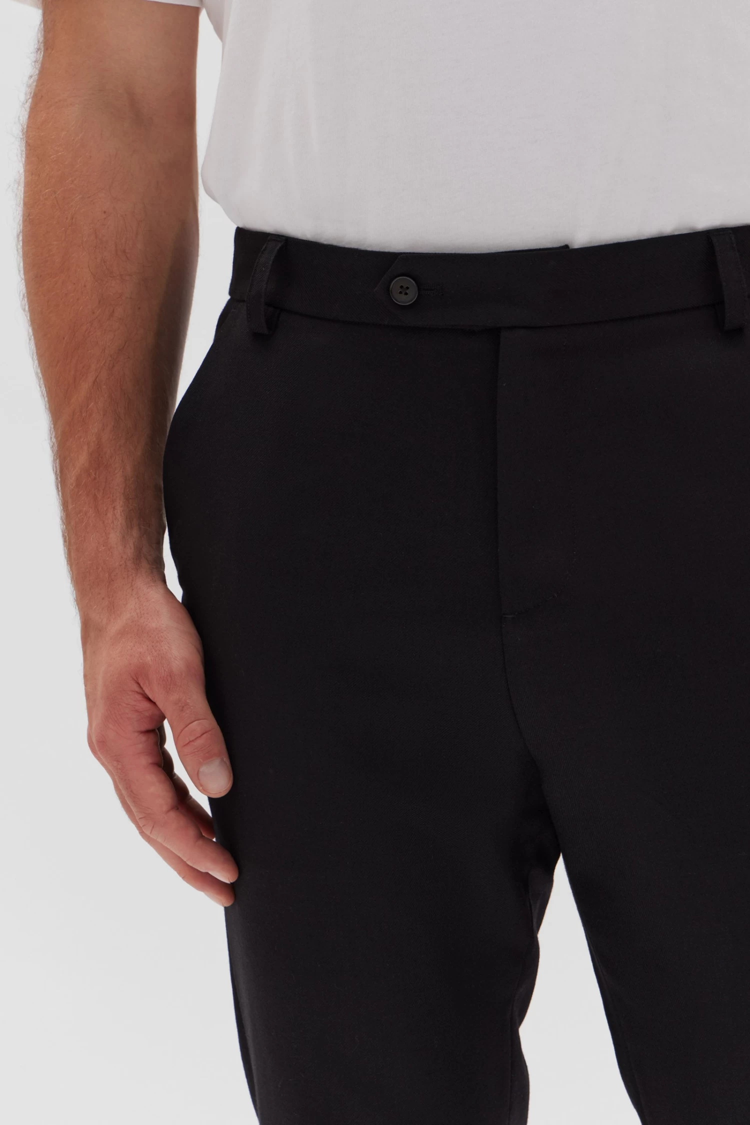 A wool suit is a must for events and formal occasions. Enter the Wool Tailored Pant, a smart trouser cut for a tailored, slightly tapered fit. Made from premium wool with a brushed feel, these black pants feature classic details including side pockets, back welt pockets and a fixed waist with belt loops. Style our tailored pant with the coordinating Wool Tailored Jacket for a complete outfit.